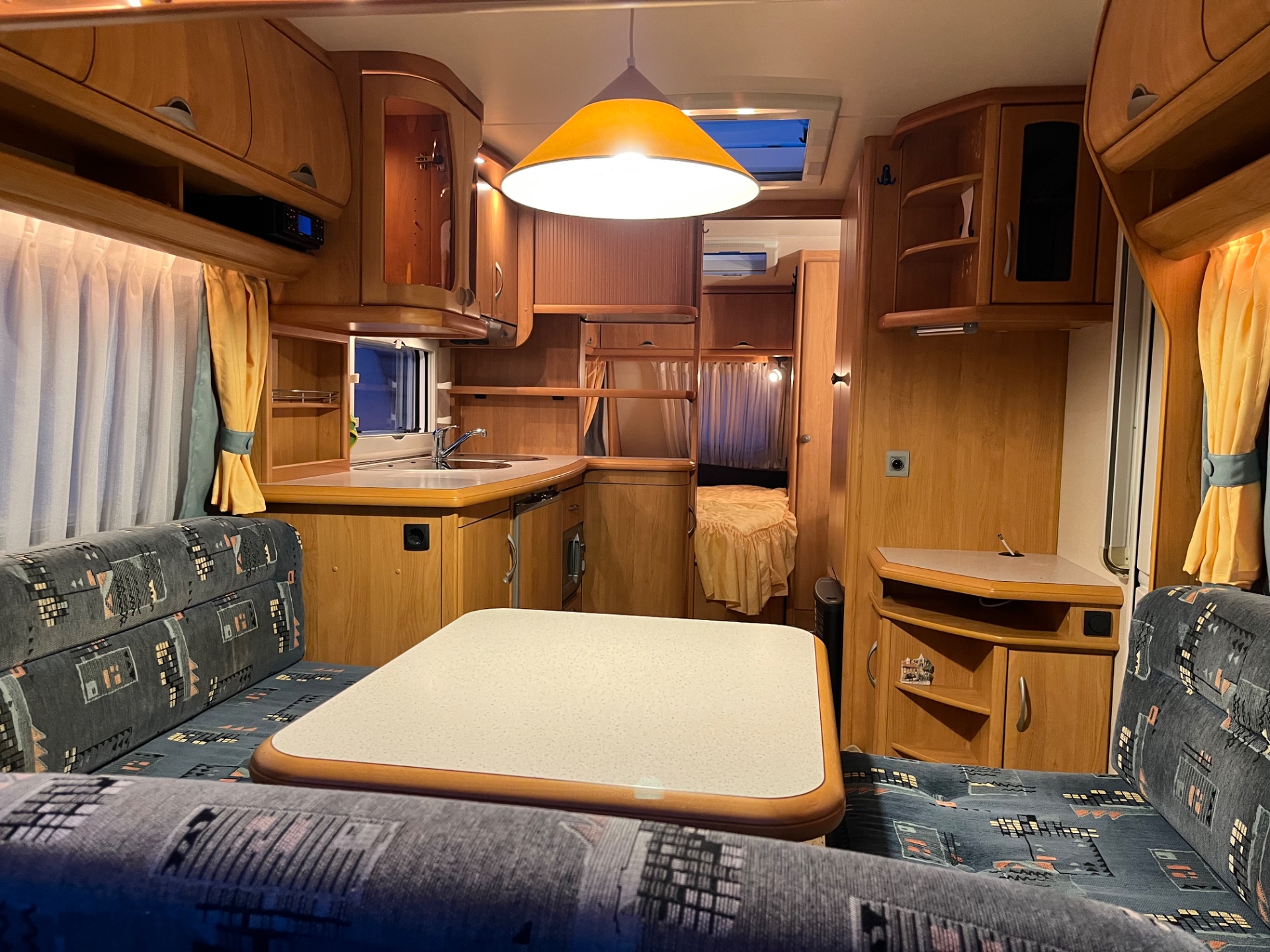 Caravan komt van de 1e eigenaar en heeft een luifel met zijwanden, zie de foto.