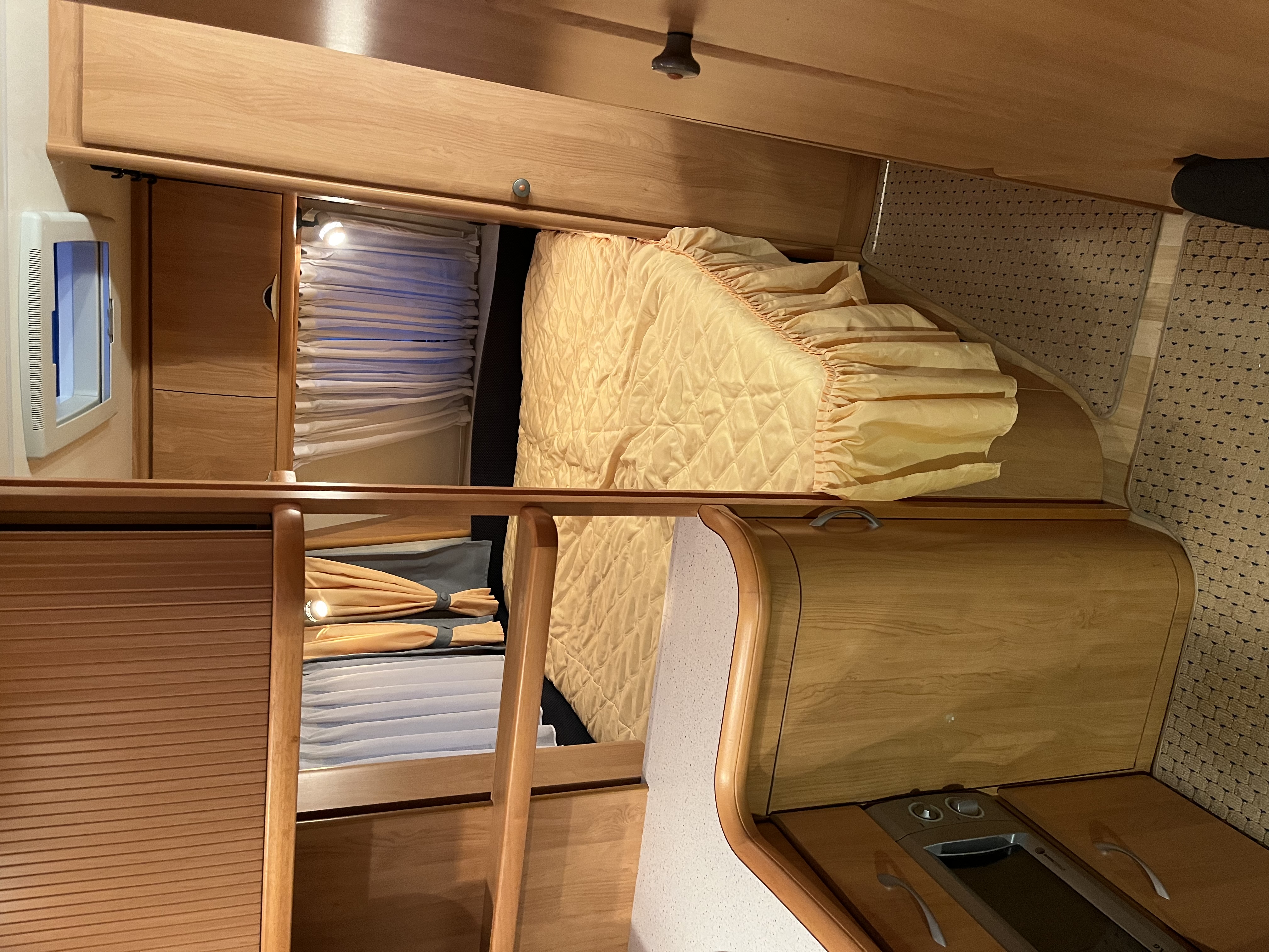 OmschrijvingZeer mooie en ruime Hobby 540 met Fransbed en grote rondzit
