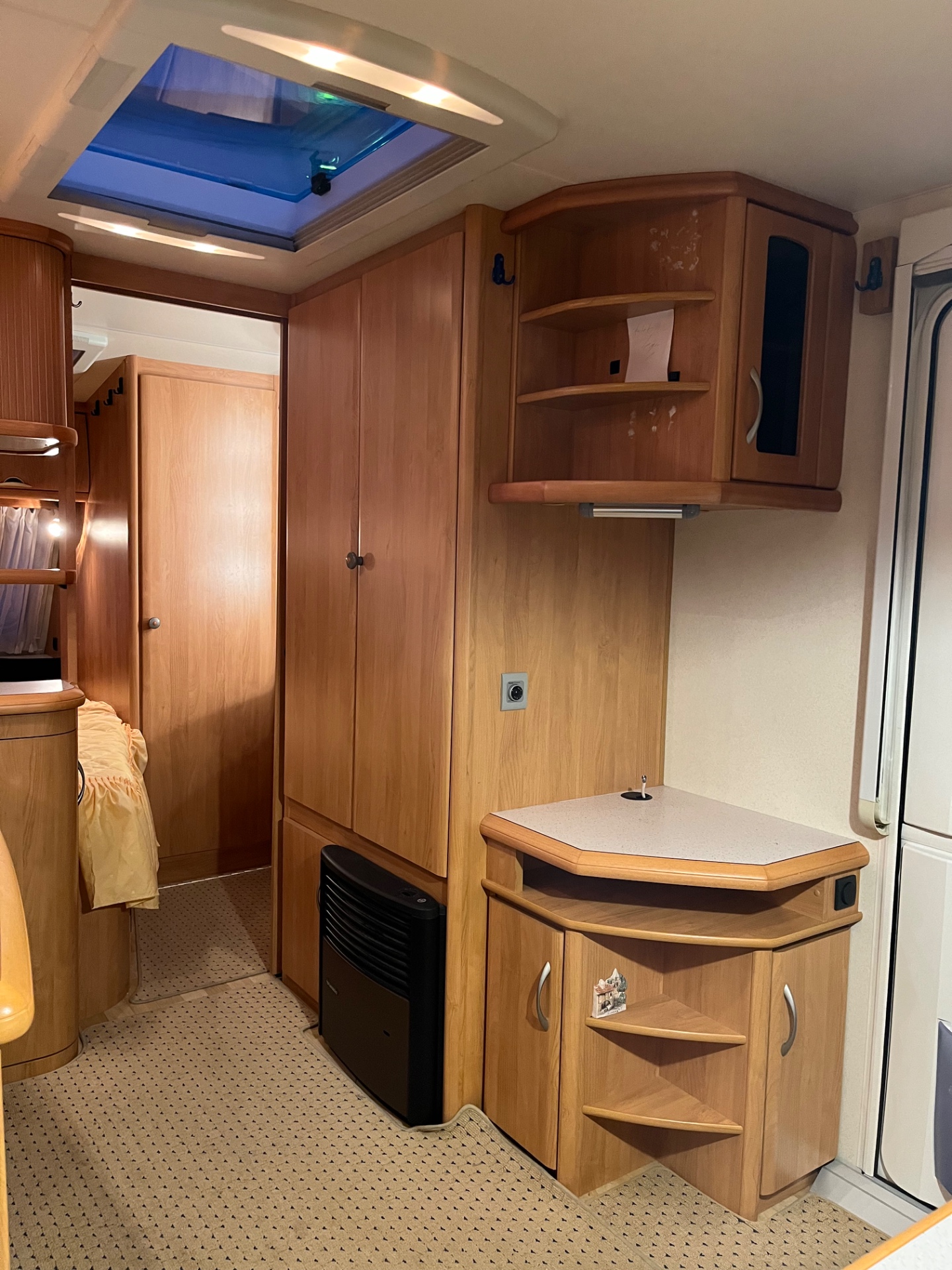Boiler, Buitenlamp, Combi Horren, Dakluik heki, Dakluik(en), Disselafdekking, Douche, Kachel, Koelkast, Reservewiel, Ringverwarming, Schokbrekers, Serviceluik(en), Stabilisator, Toilet, Verzwaarde steunen, Voortent, Watertank (vast), Accu, Acculader, Airco, Fietsenrek voorop, Hordeur, Lichtmetalen velgen, Luifel, Mover, Omvormer, TV beugel, Ladder en Imperiaal, Magnetron